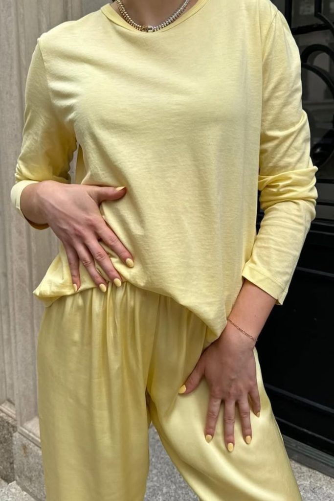 Butter yellow’s appeal is driven by its wearability and versatility. Style it like you would any other neutral, or try pairing it with more unexpected, vibrant hues like pink, red, and blue. Don’t be afraid to try more out-of-the-box combinations, opting to pair butter yellow with contrasting patterns and textures—leopard print, suede, or raffia—to give it a fresh, modern feel. When in doubt, wear the buttery shade from head to toe, or try styling one yellow piece with a neutral base.