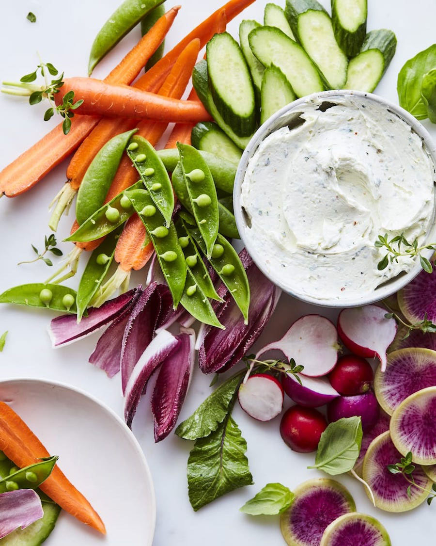 Say goodbye to basic chips and dip, and serve this whipped goat cheese with fresh herbs to your guests instead. Paired with crisp vegetables, it’s the perfect summer appetizer.