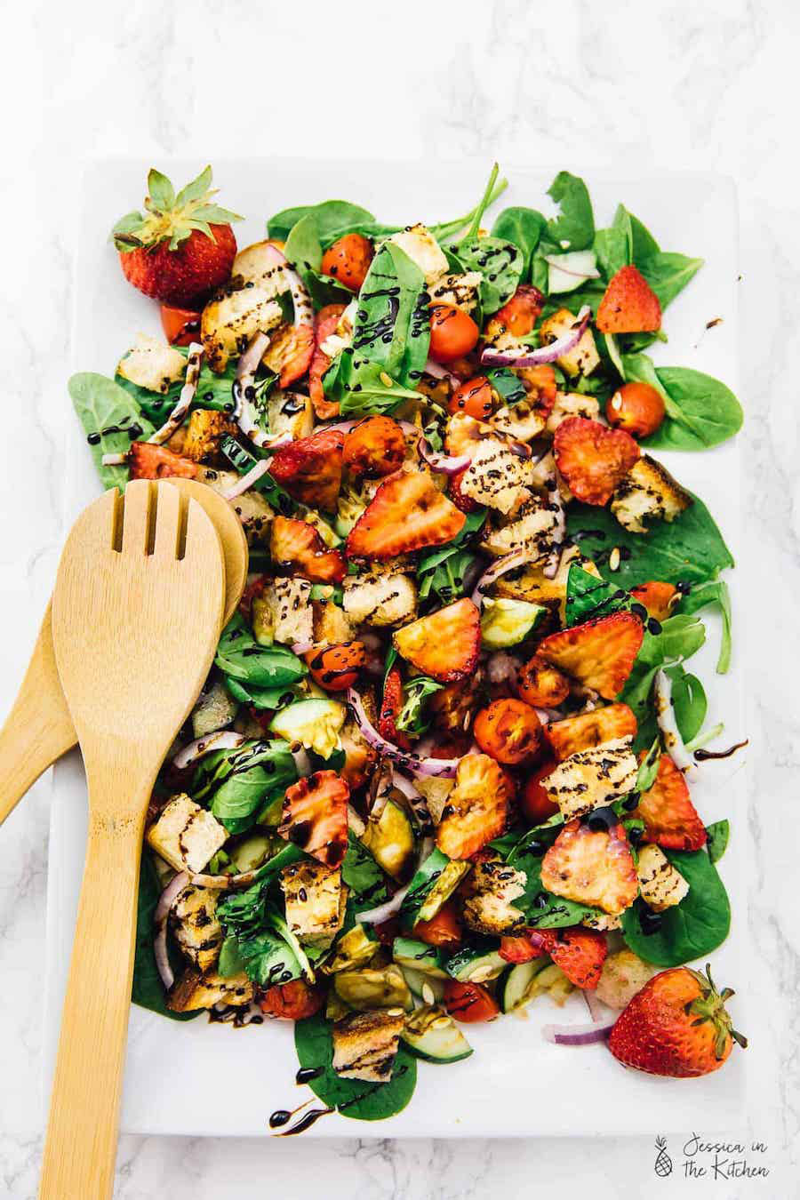 15. Strawberry Panzanella Salad with Balsamic Glaze