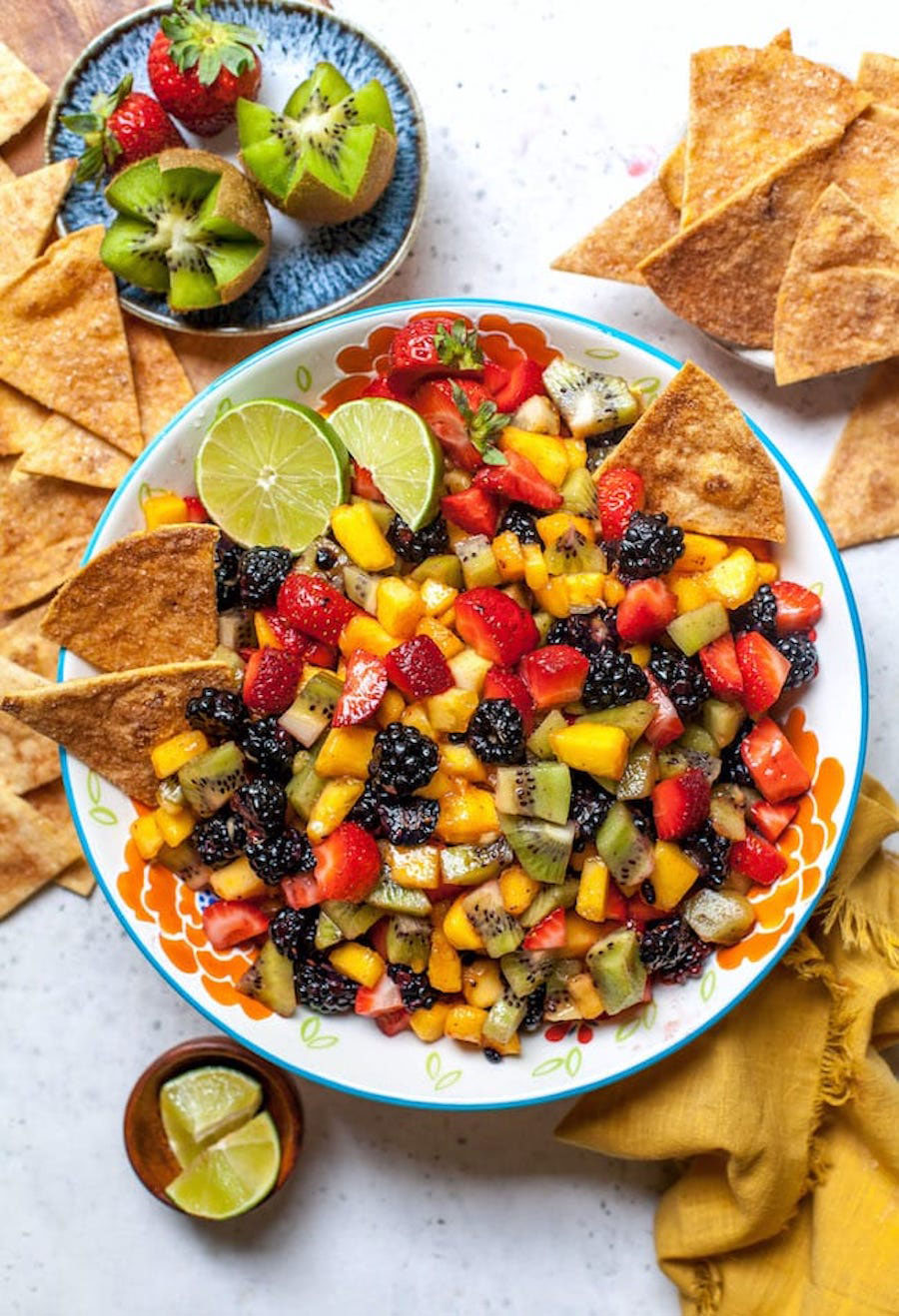27. Fruit Salsa with Cinnamon Sugar Tortilla Chips