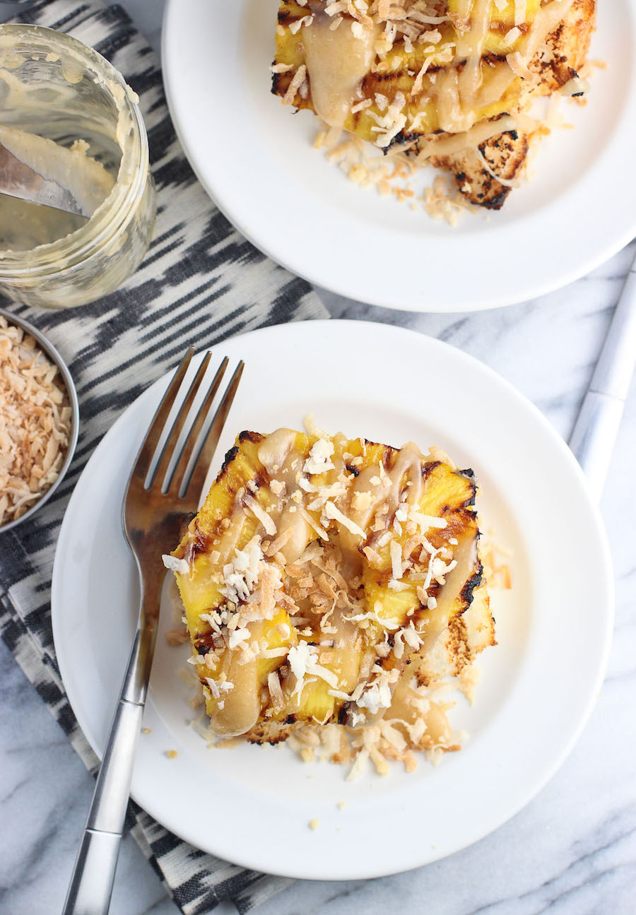 32. Grilled Angel Food Cake with Pineapple, Coconut, and Caramel