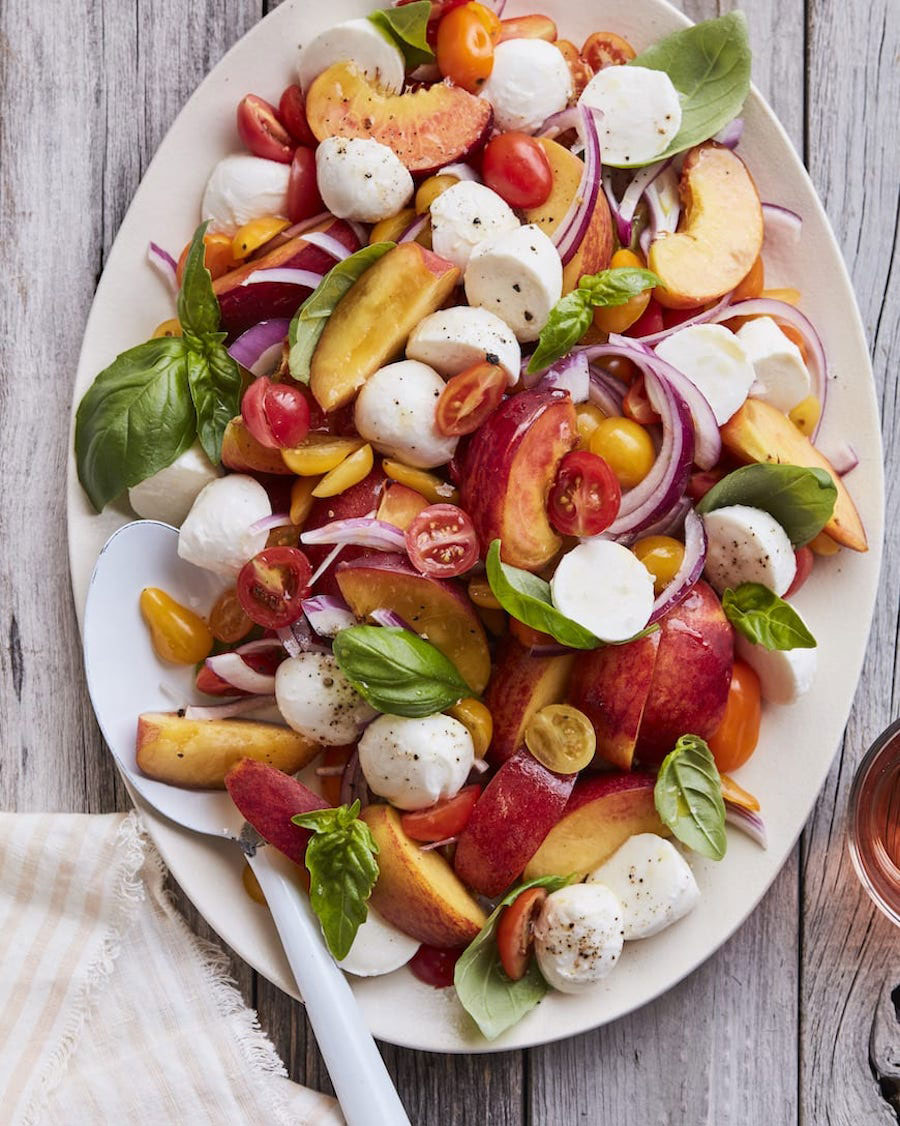Fresh tomato, mozzarella, and basil make for a classic summer combo, and adding peach takes it to the next level. You’ll be making this peach caprese salad on repeat all summer long.